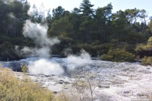 Новая Зеландия уже давно получила много интересных прозвищ, среди которых особенного внимания заслуживает негласная кличка – Shaky Isles, то есть, шаткие, трясущиеся острова. Название стало результатом регулярно наблюдаемых здесь сейсмических активностей. Геотермальное чудо, называемое Уаи-О-Тапу, расположилось в вулканическом центре Окатайна, что находится в 20 километрах южнее туристического центра Южного острова – городка Роторуа. Статус «чуда» место получило после организации здесь парка.